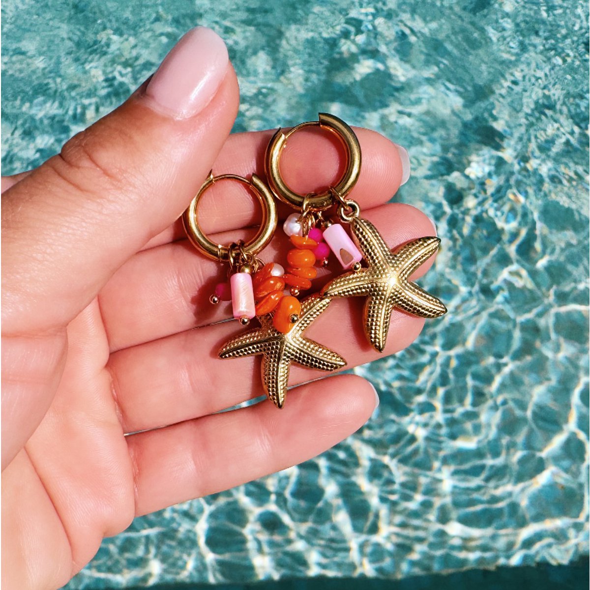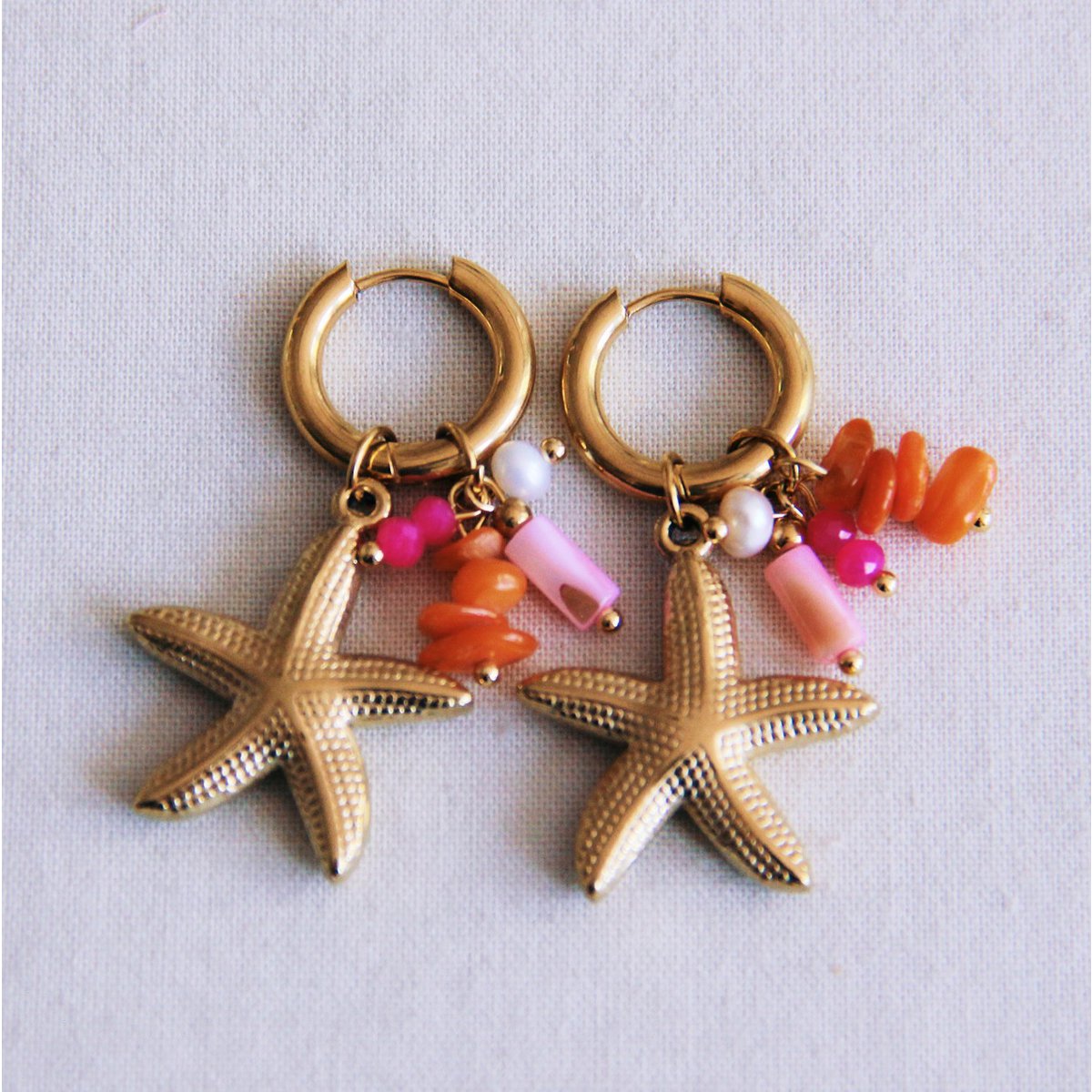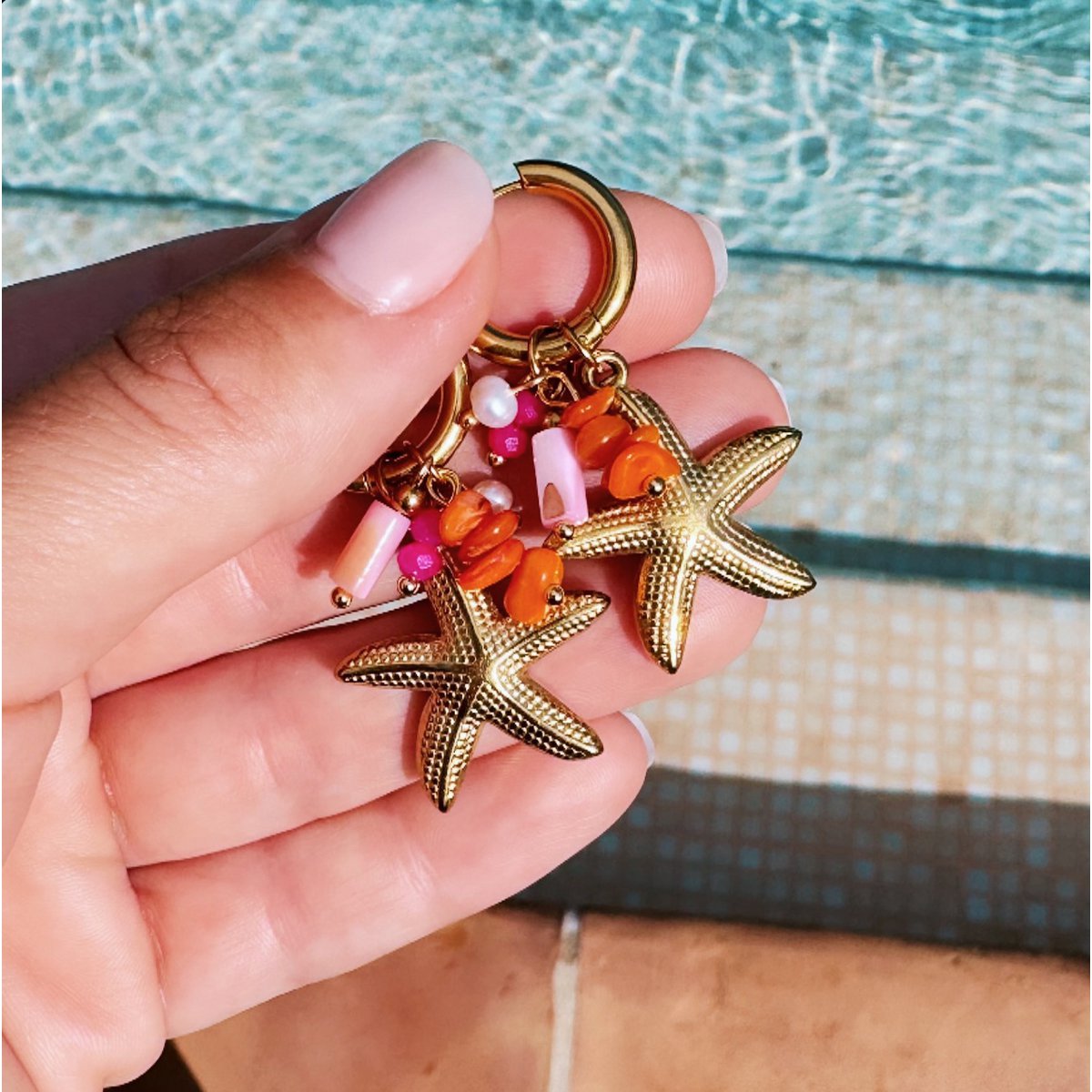 Ohrring mit Cluster von Edelsteinen und Seestern