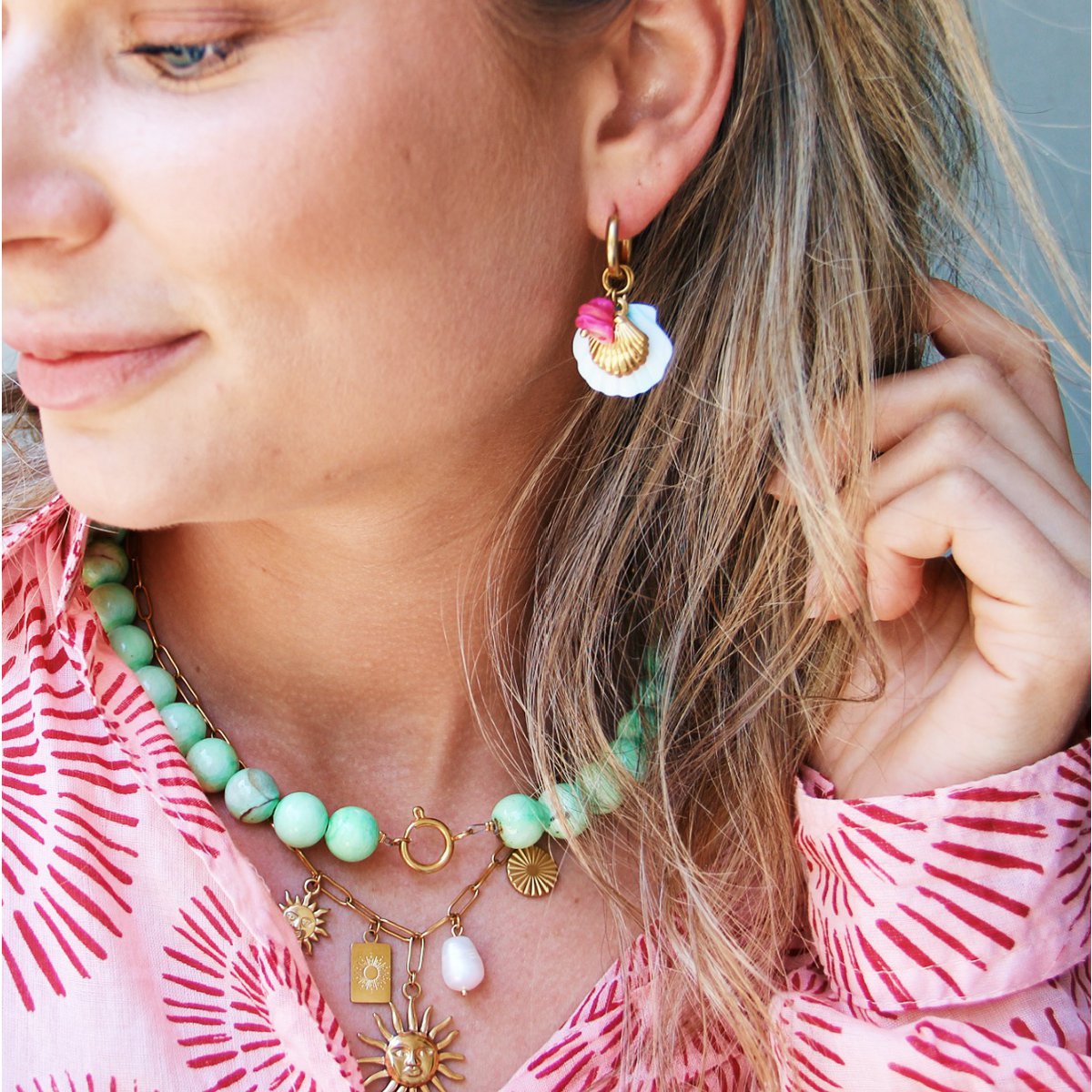 Ohrringe mit weißer Hülle, Seestern und Röhre - hellrosa